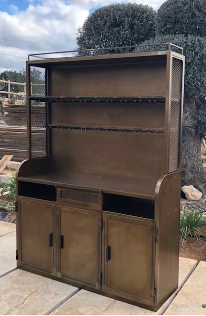 Estructura metalica de hierro, relleno de chapa lisa y deploye, acabado envejecido.