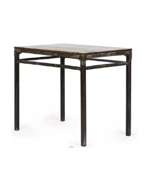 Estructura metalica de hierro acabado envejecido y tablero de madera teñida.